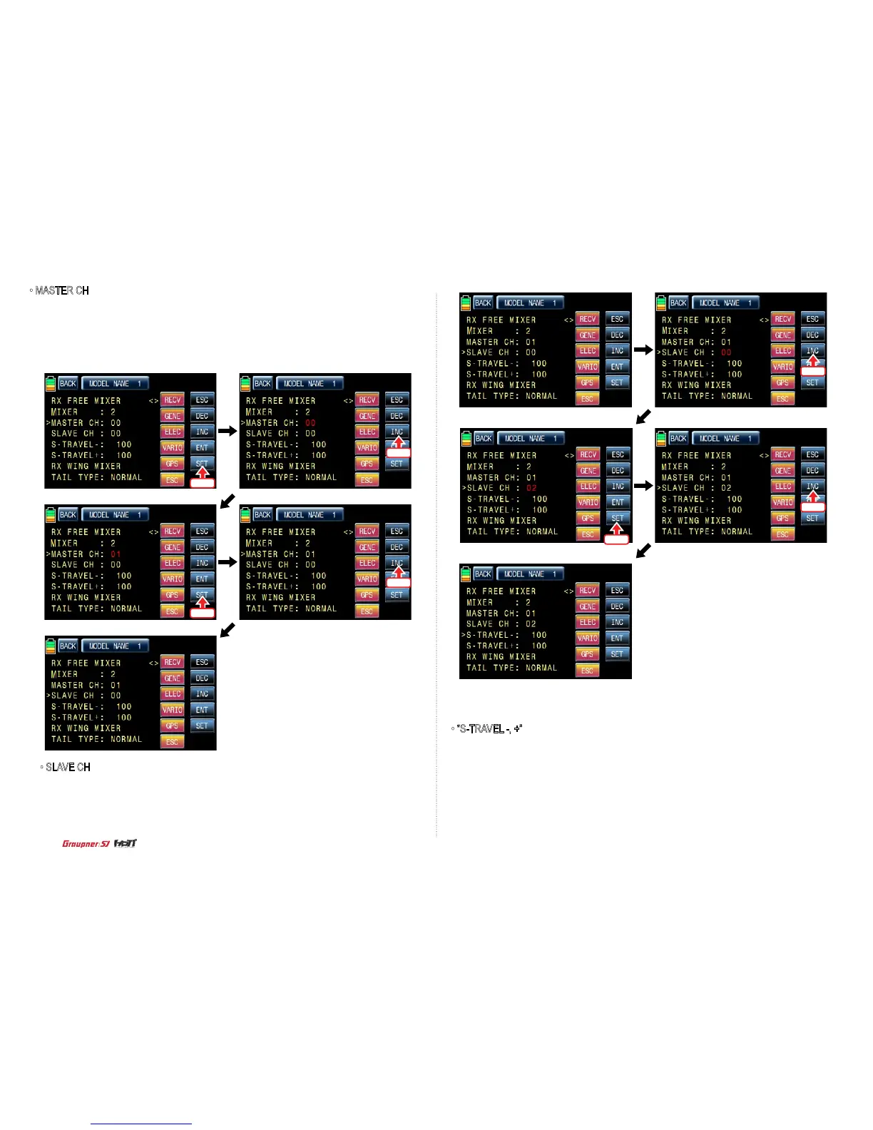 Touch “SET” icon to activate the value in red and select the master channel number with INC and
