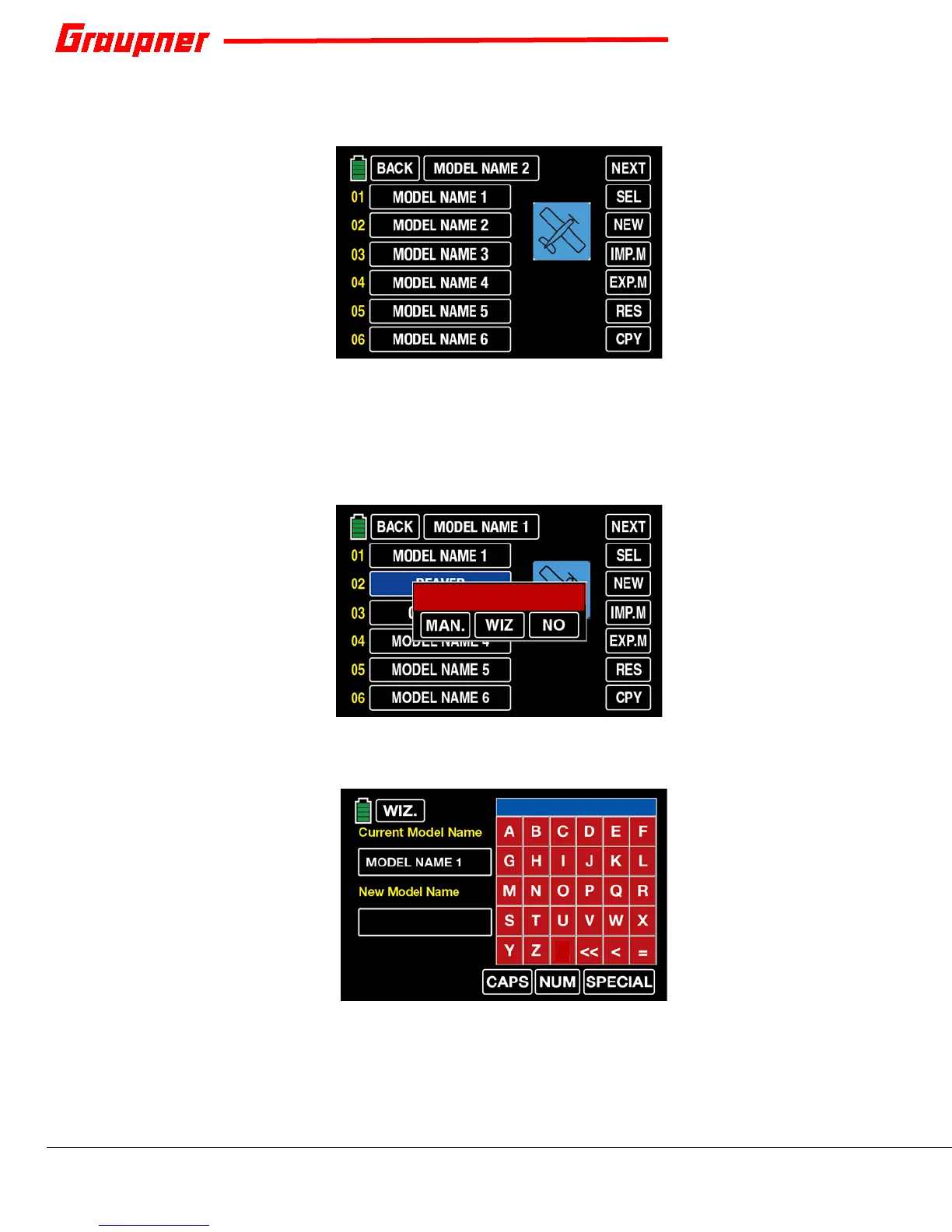 Type the name of the new model. Press CAPS, NUM or SPECIAL for