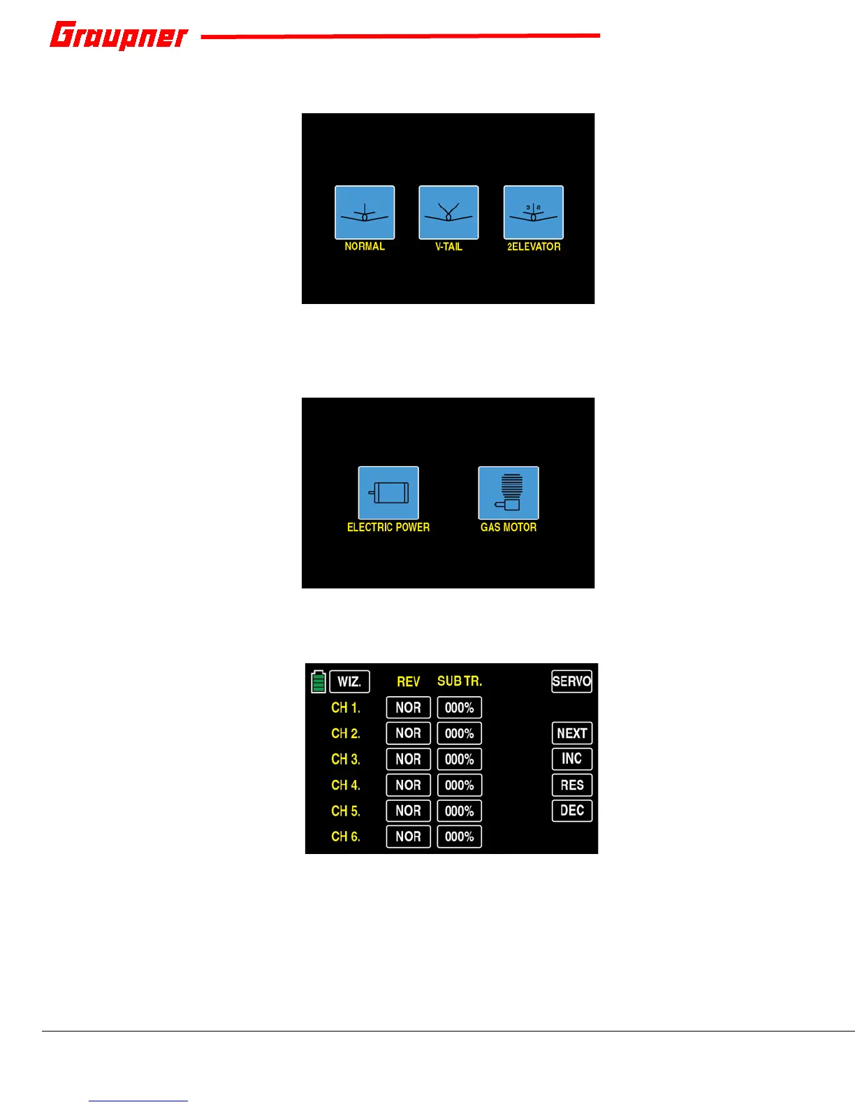 Select the appropriate icon for the model’s power system. The REV/SUB