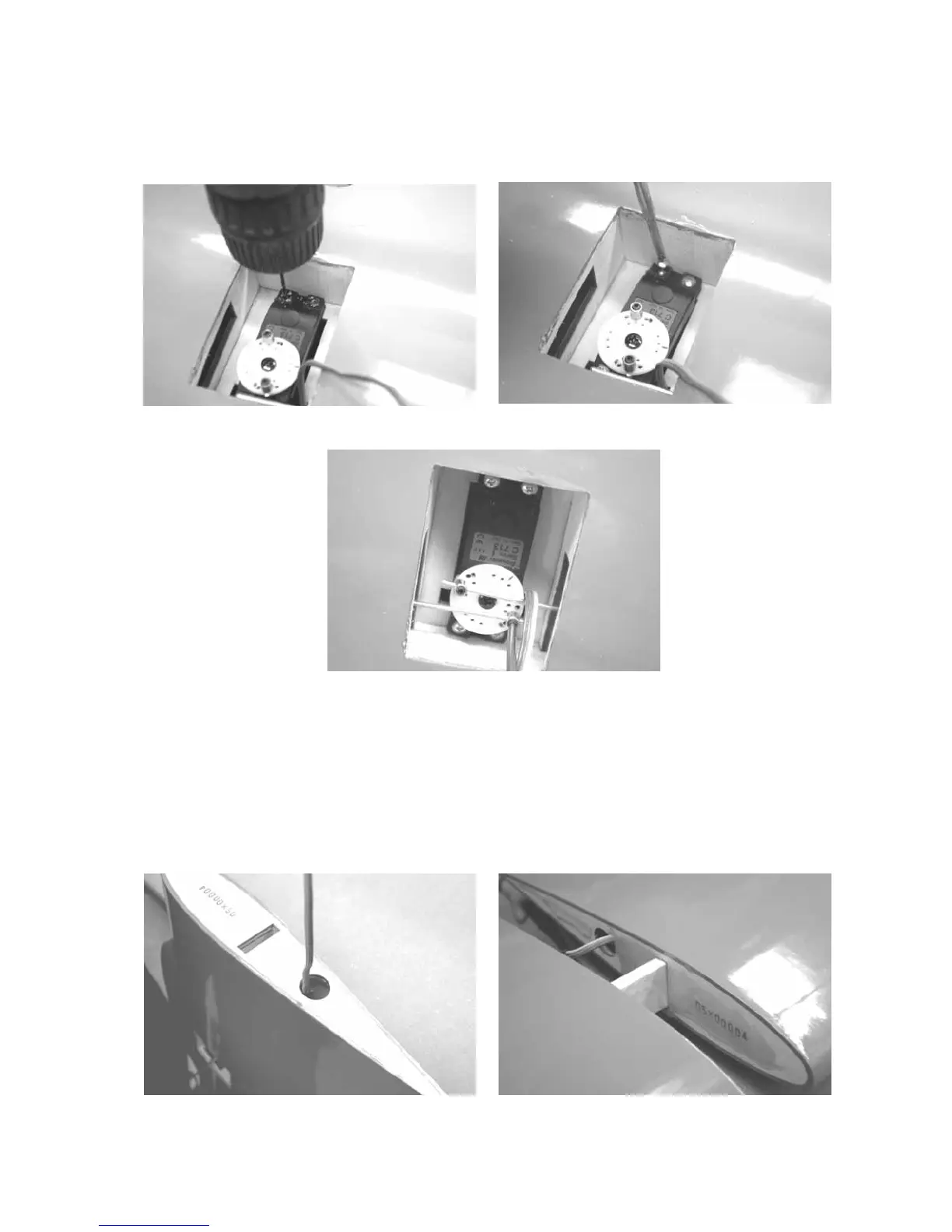 Servo in das Befestigungsbrettchen legen, Löcher mit Ø 1,5 mm vorbohren und das