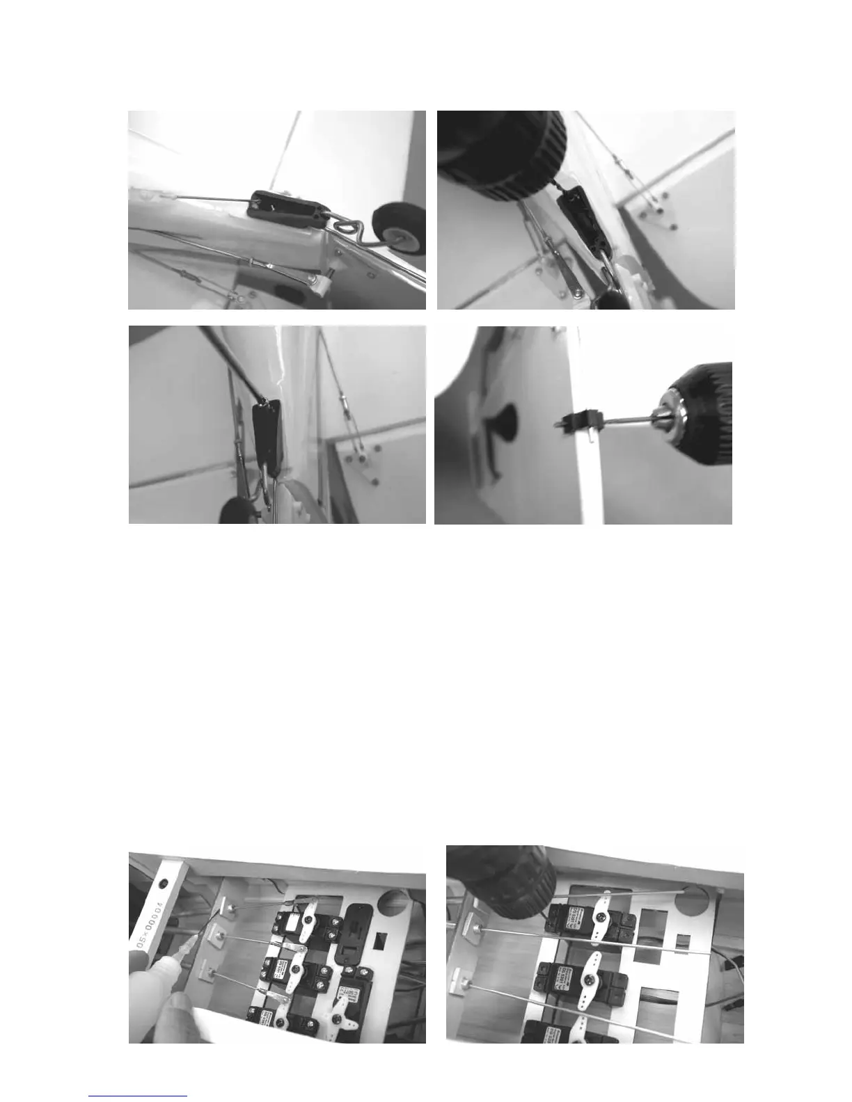Schrauben befestigen. Mit Ø 1,5 mm vorbohren und, wie beim Querruderservo-