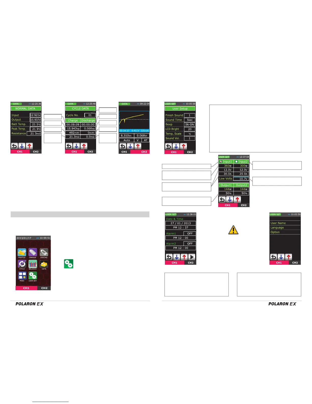 - Charge/discharge time: Displays the total time of the charge/discharge process.