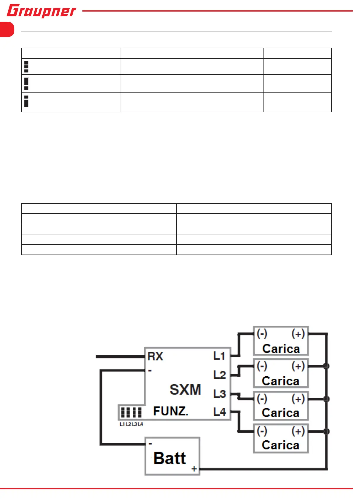 • Il contatto dell‘interruttore collega (ON) oppure divide (OFF) le uscite (da L1 a L4) (-) In una