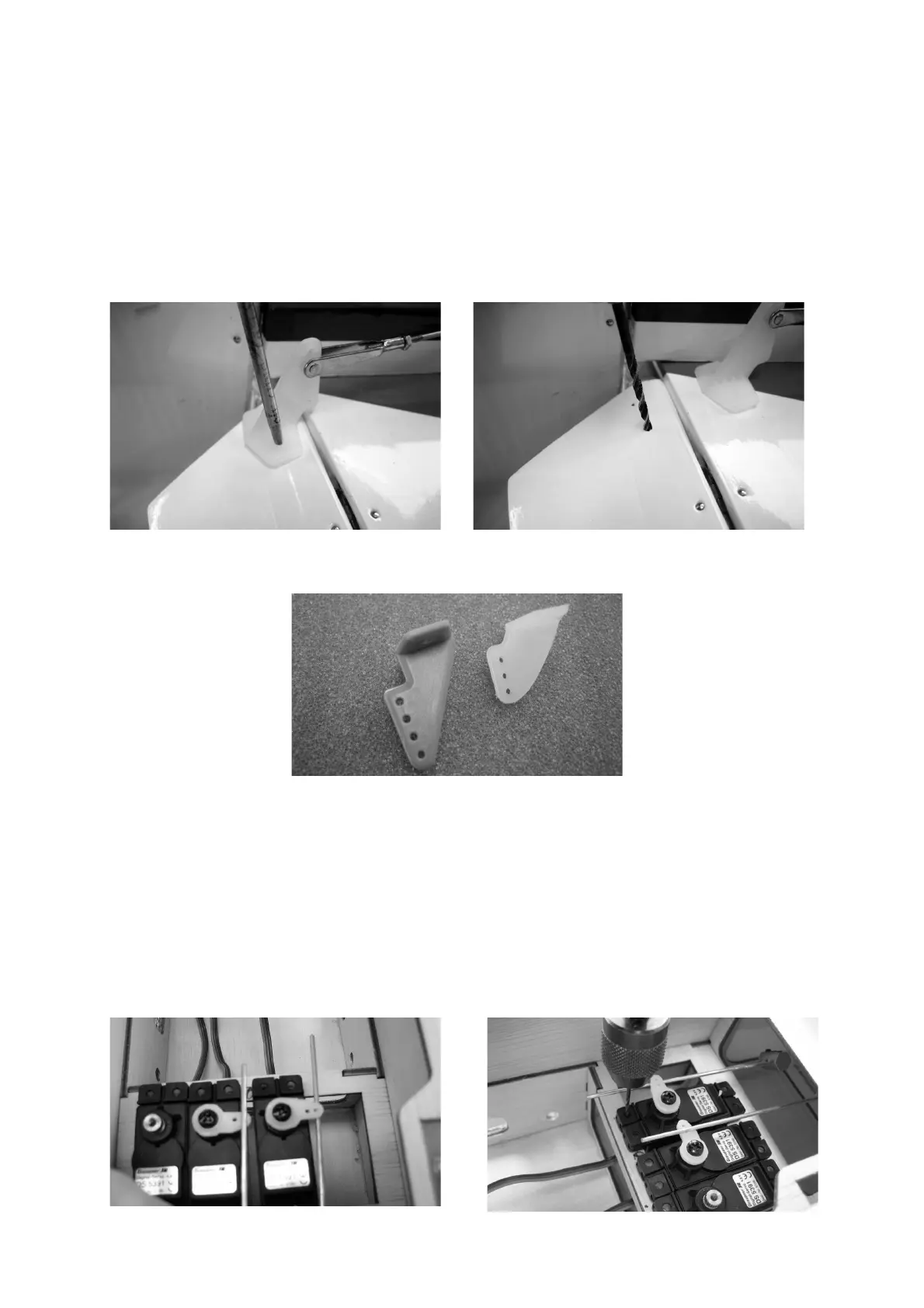 coincide exactly with the linkage holes in the servo output arms. Drill 1.5 mm Ø pilot-