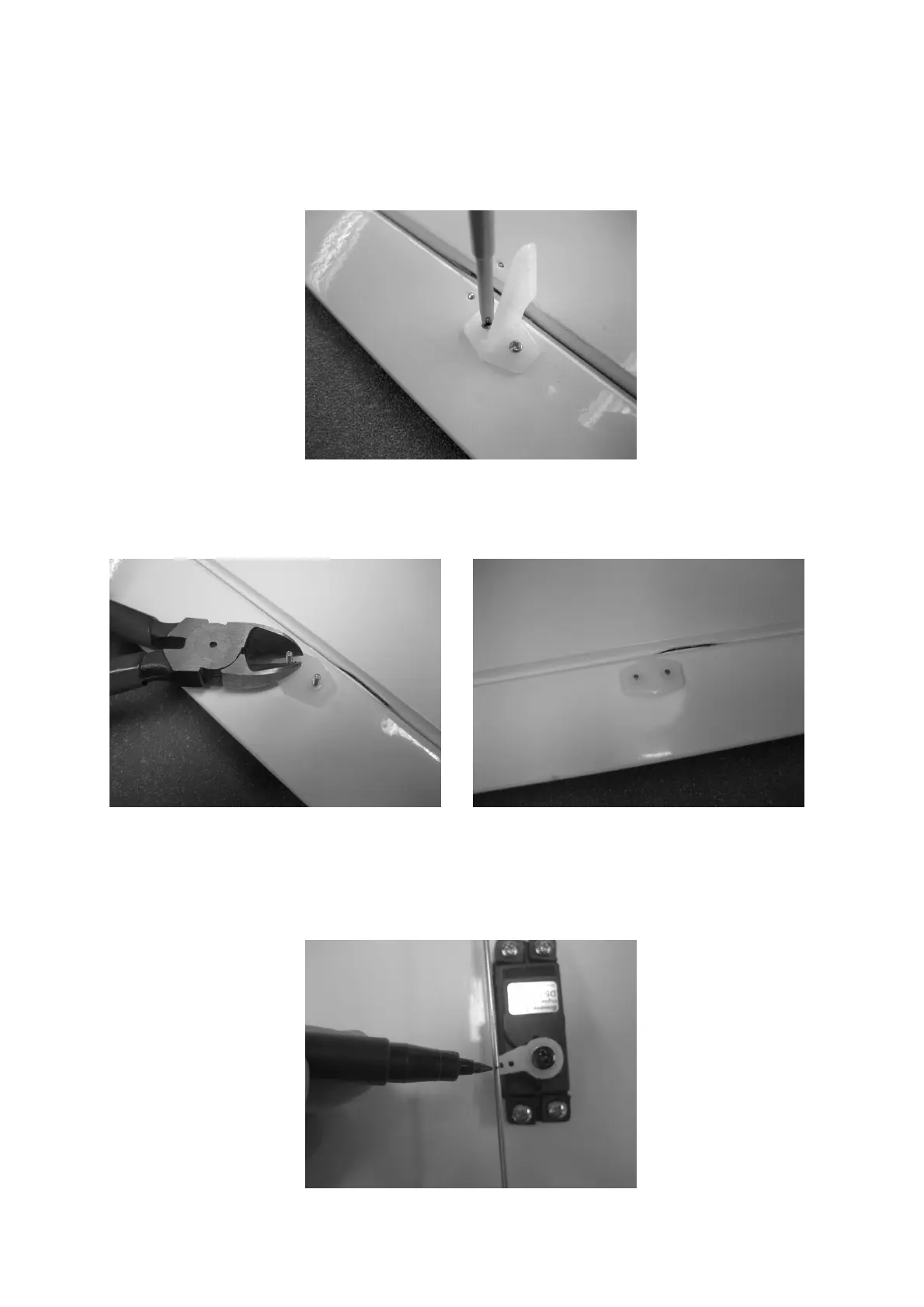 Fix the horn to the aileron using the pan-head screws and plastic spreader plate