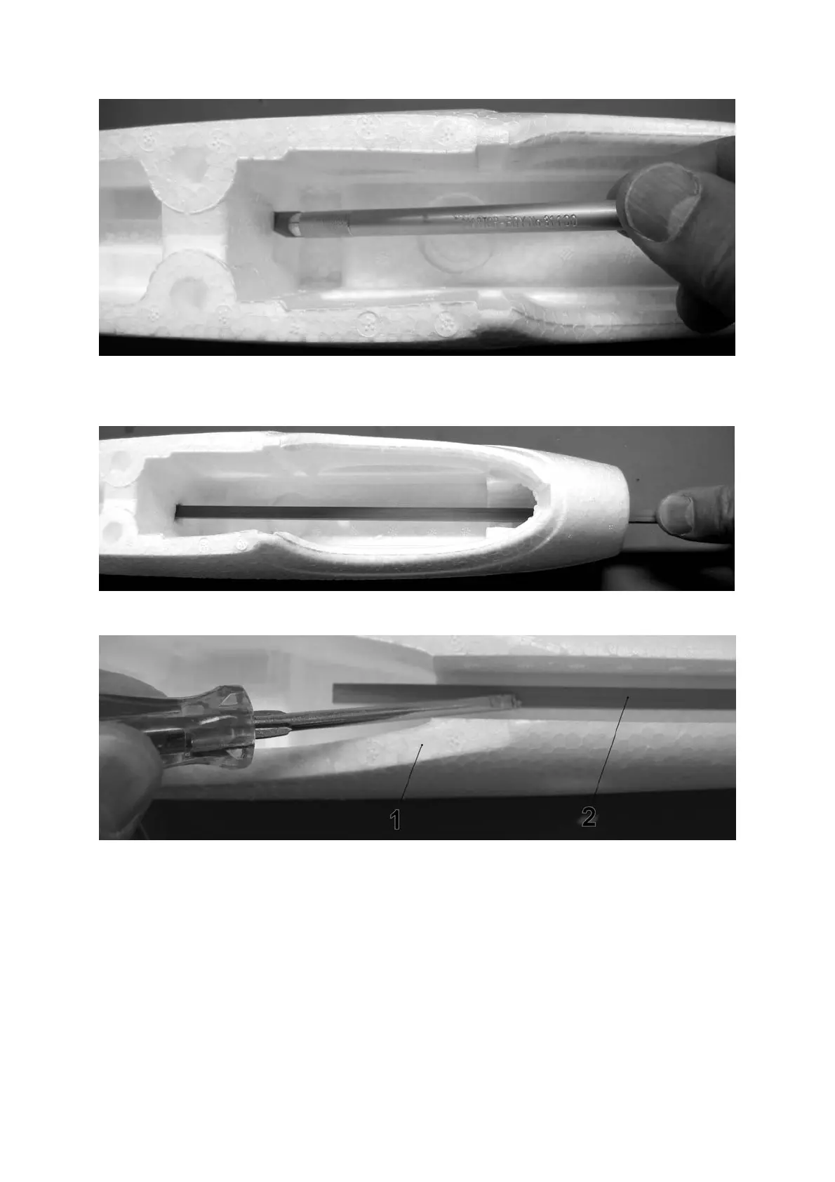 Presser et coller le renfort (2) exactement au milieu dans le fuselage. Veiller à ce que
