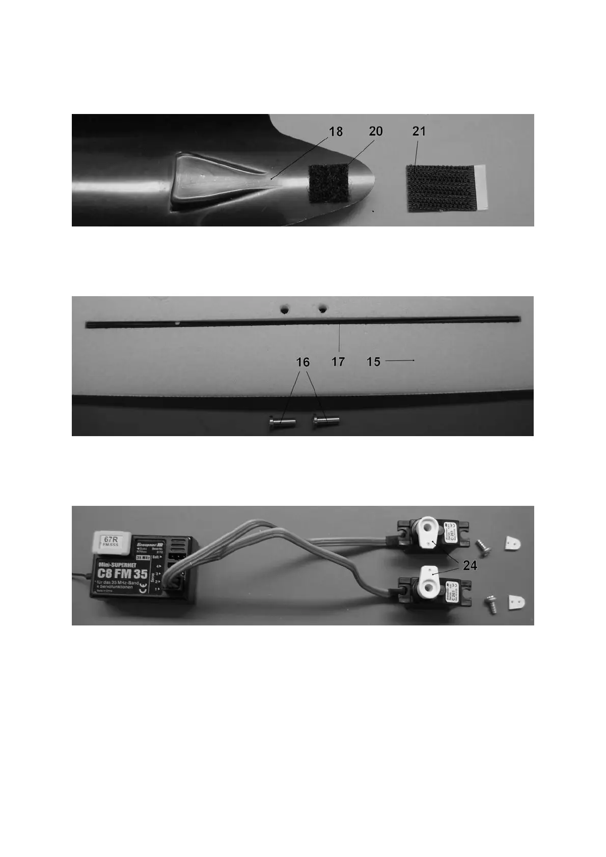 par les modèles raccourcis (24). Insérer les servos et les fixer avec quelques gouttes