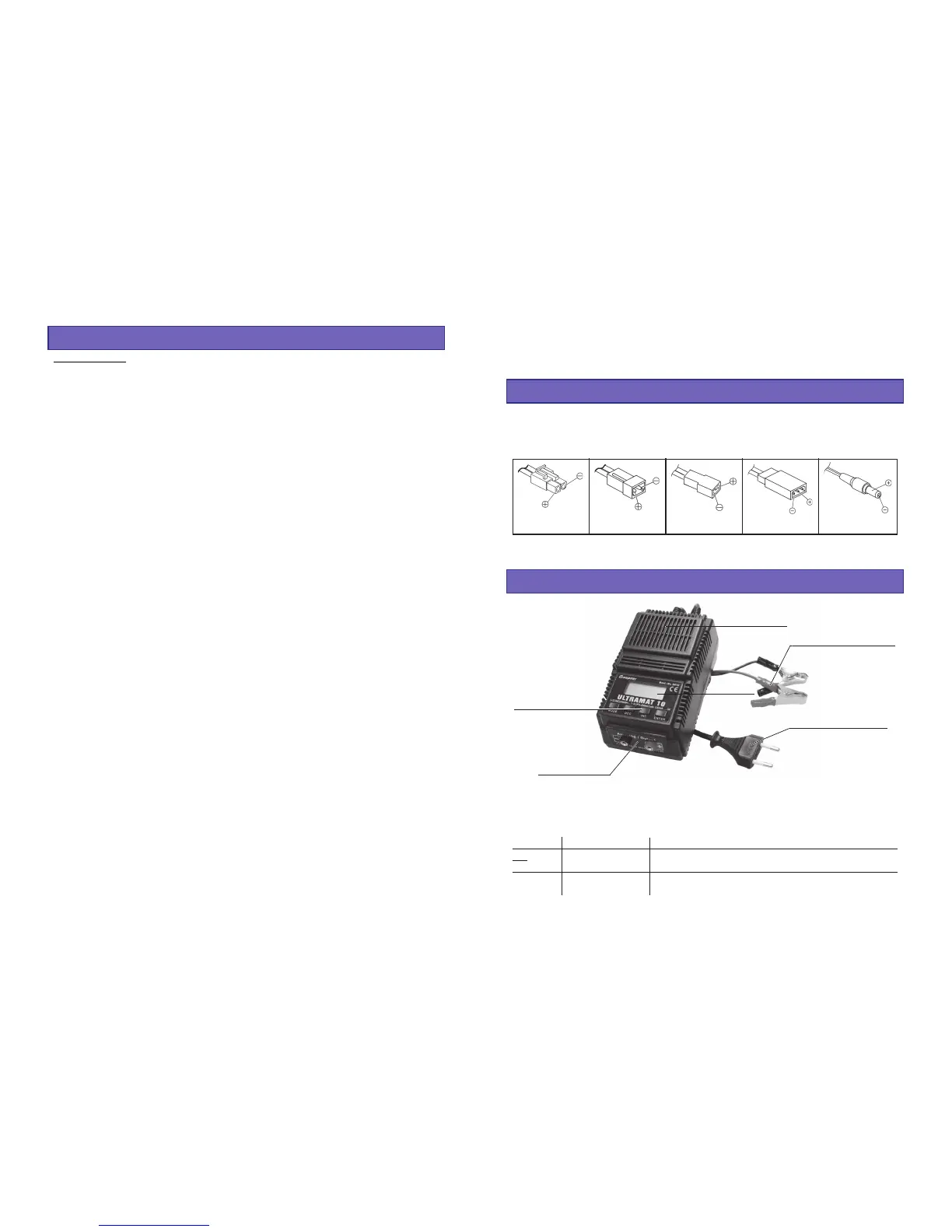 • L’accu à charger sera connecté sur le chargeur par un cordon de charge adapté en respectant les