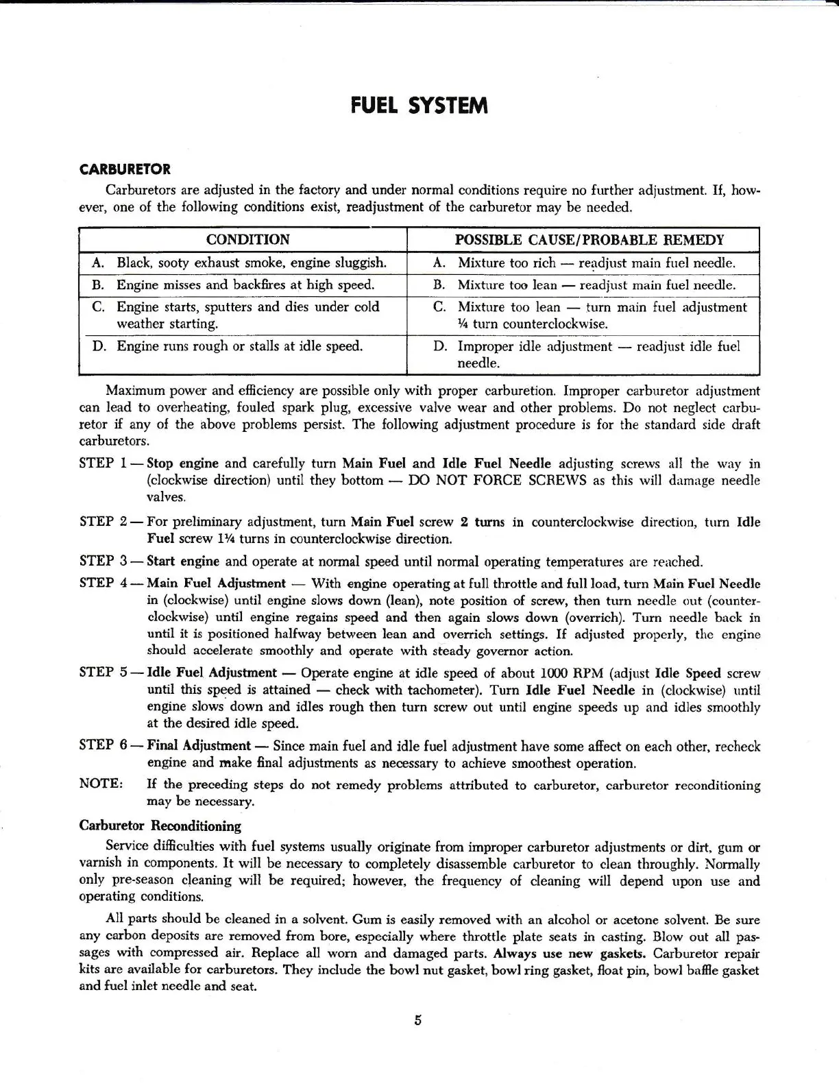 carburetion. Improper carburetor adjustment