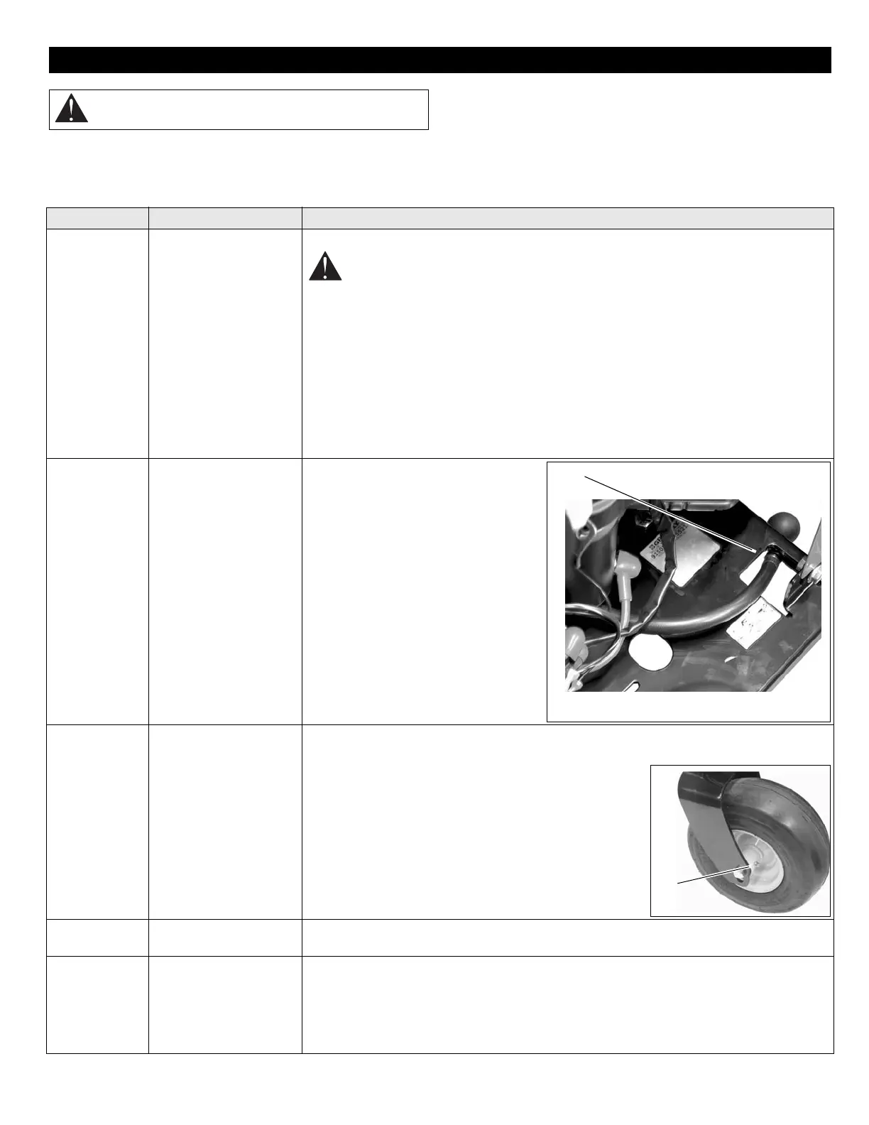 Check Mower Blades Check for worn or damaged mower blades (see SHARPENING MOWER BLADE on