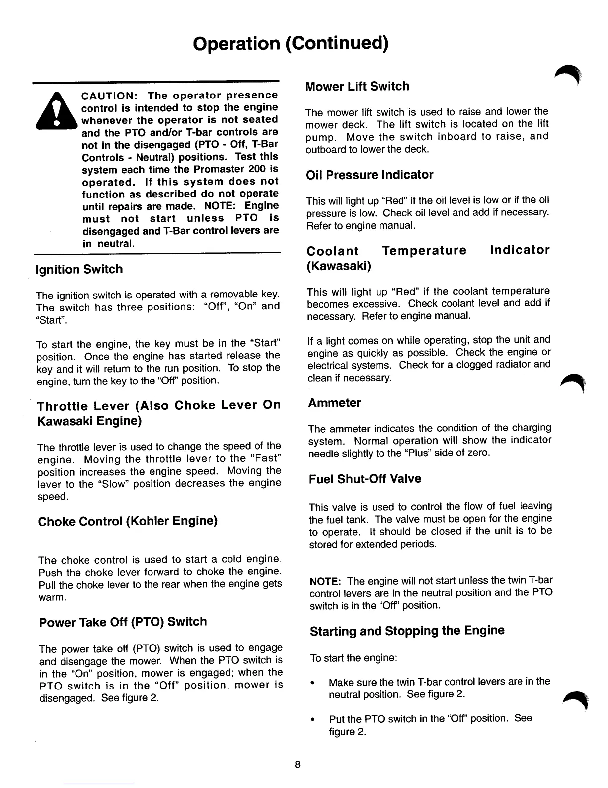 Gravely 992 - Key Controls and Indicators; Engine Operation Procedures