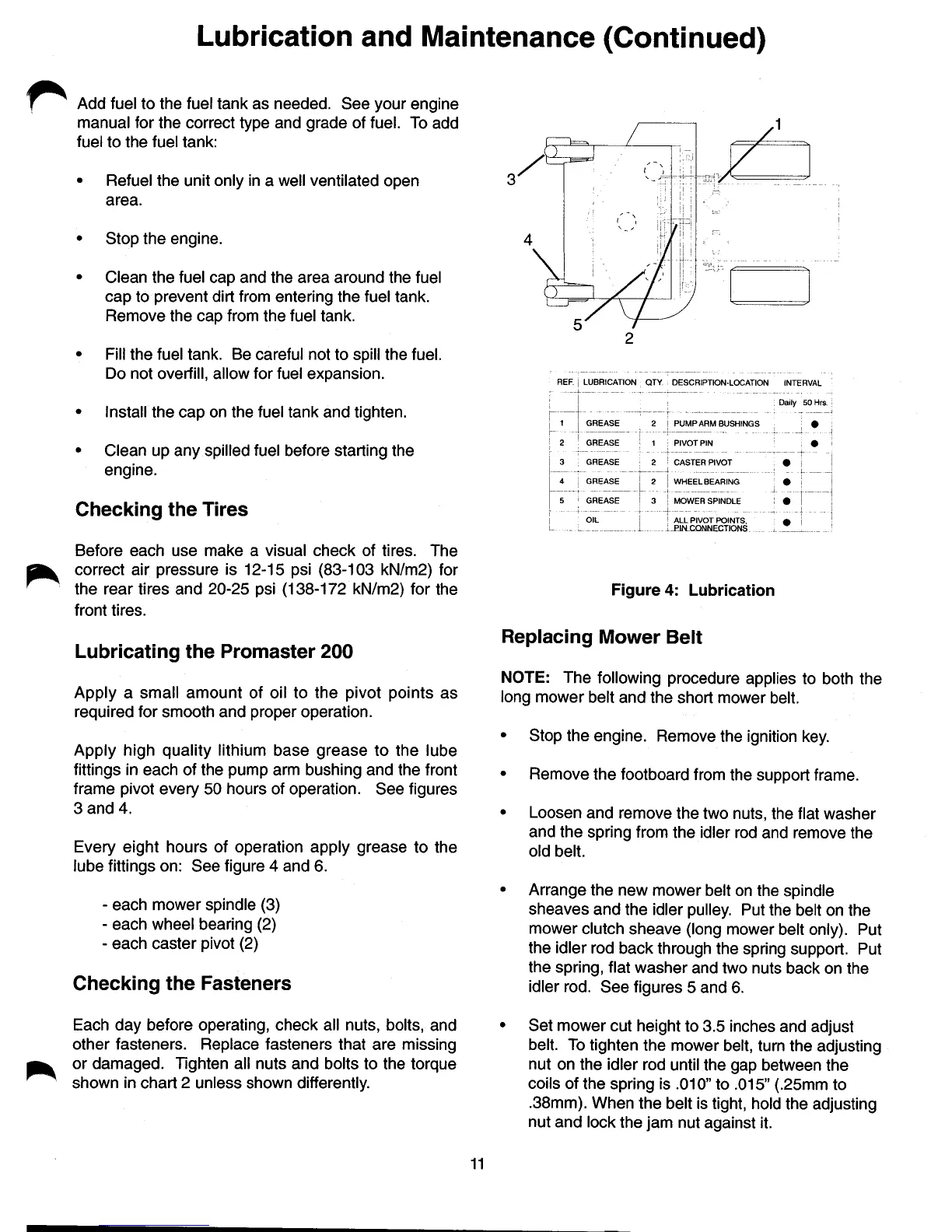 Gravely 992 - Chassis Lubrication and Tire Checks; Belt Replacement Procedures