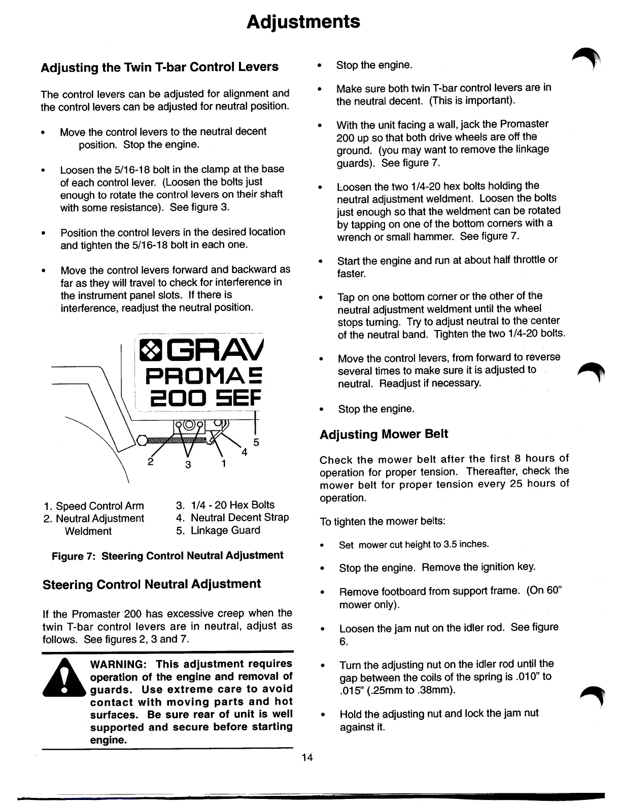Gravely 992 - Adjustments; Control Lever and Mower Belt Adjustments
