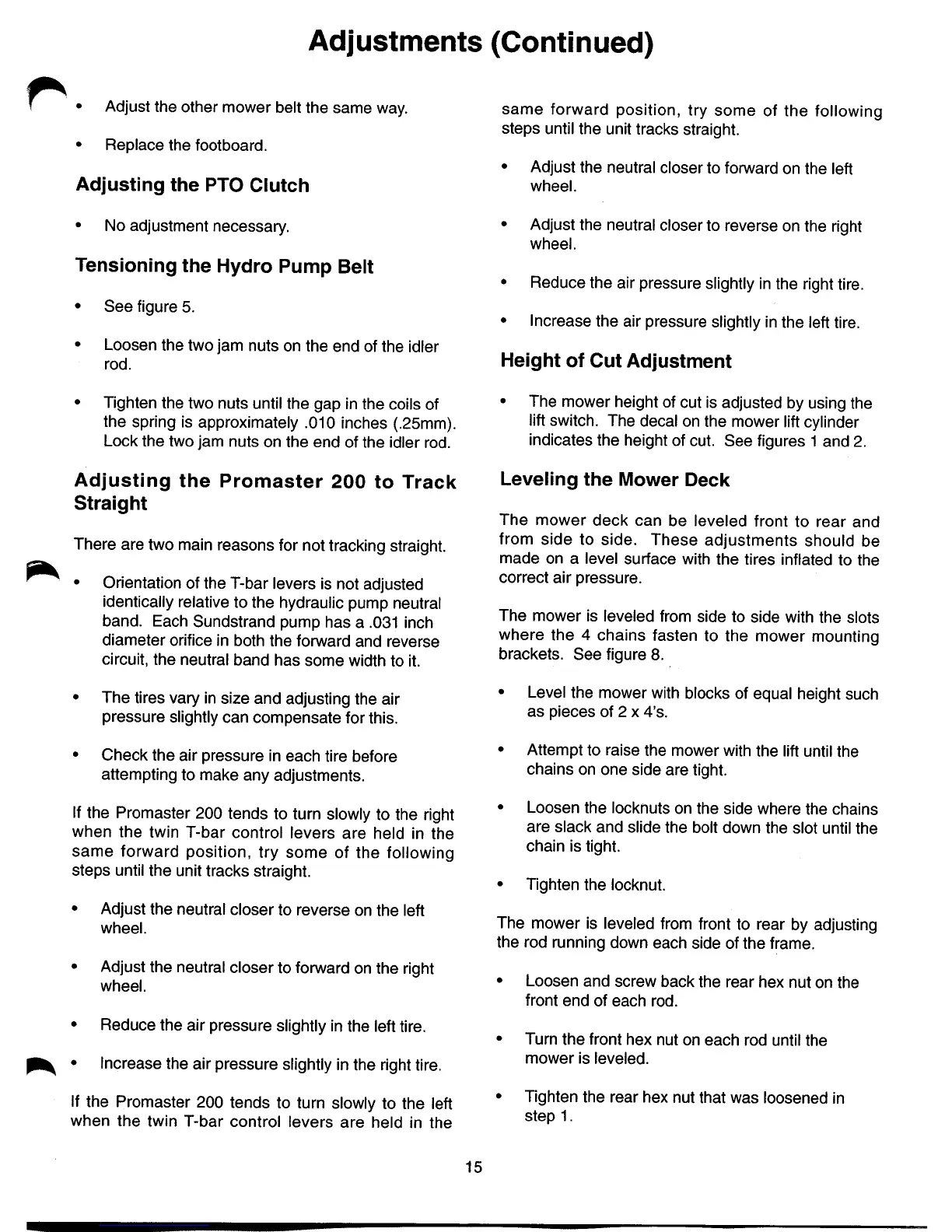 Gravely 992 - Steering and Tracking Adjustments; Height of Cut Adjustment