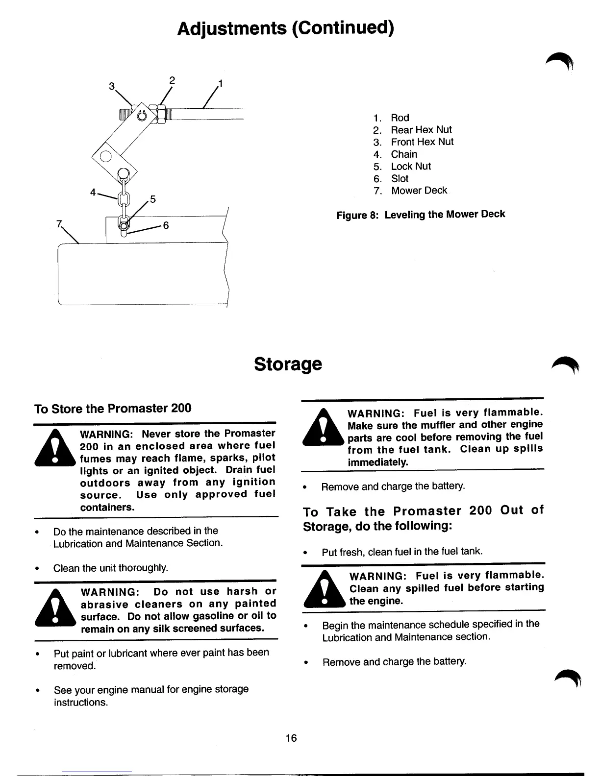 Gravely 992 - Storage Procedures; Storing the Promaster 200; Removing from Storage