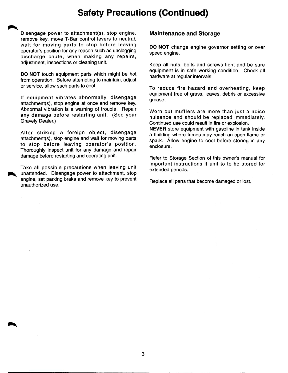 Gravely 992 - Maintenance and Storage; Maintenance Procedures; Storage Guidelines