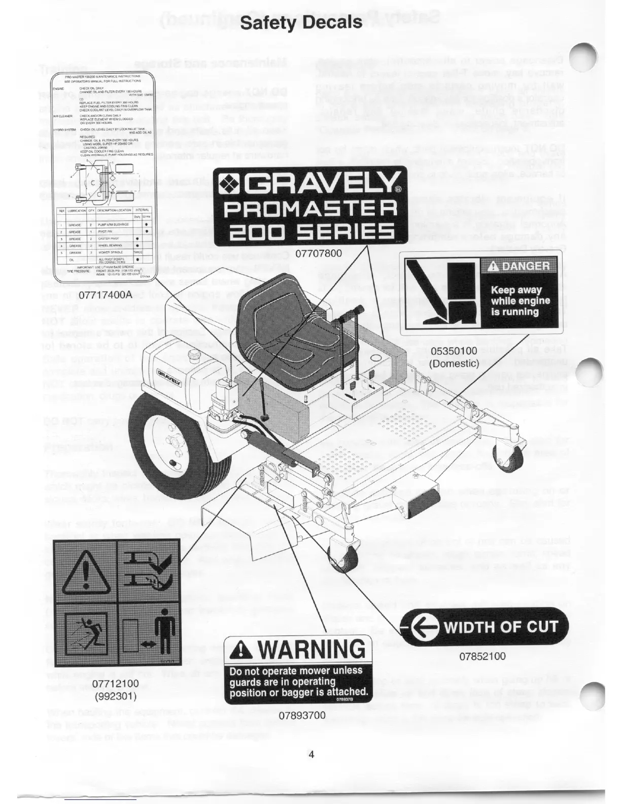 Gravely 992 - Safety Decal Identification