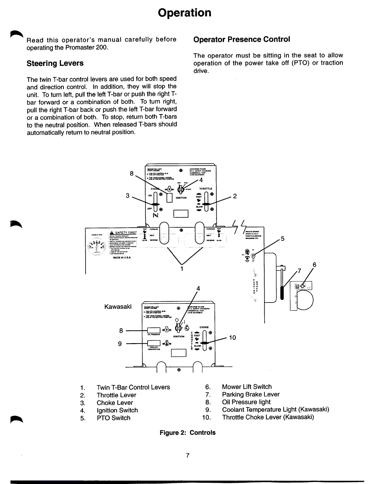 Gravely 992 - Operating the Promaster 200; Steering Lever Operation; Operator Presence Control System