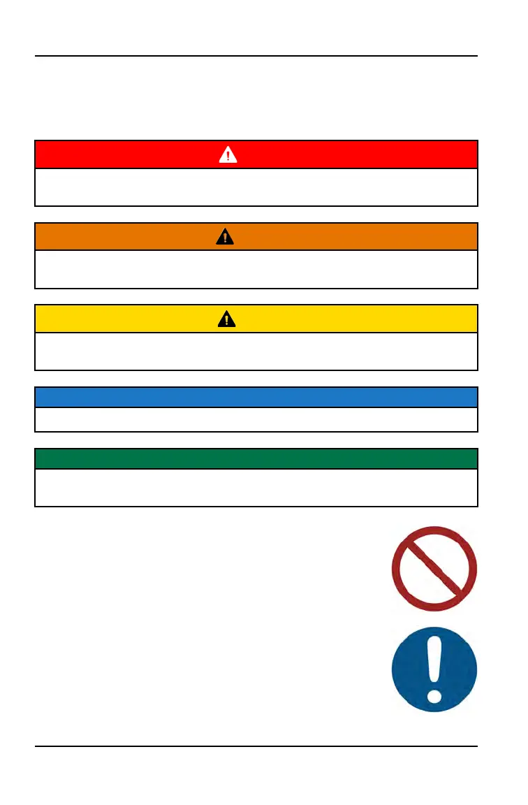 The following signal words and symbols appear throughout this manual and on