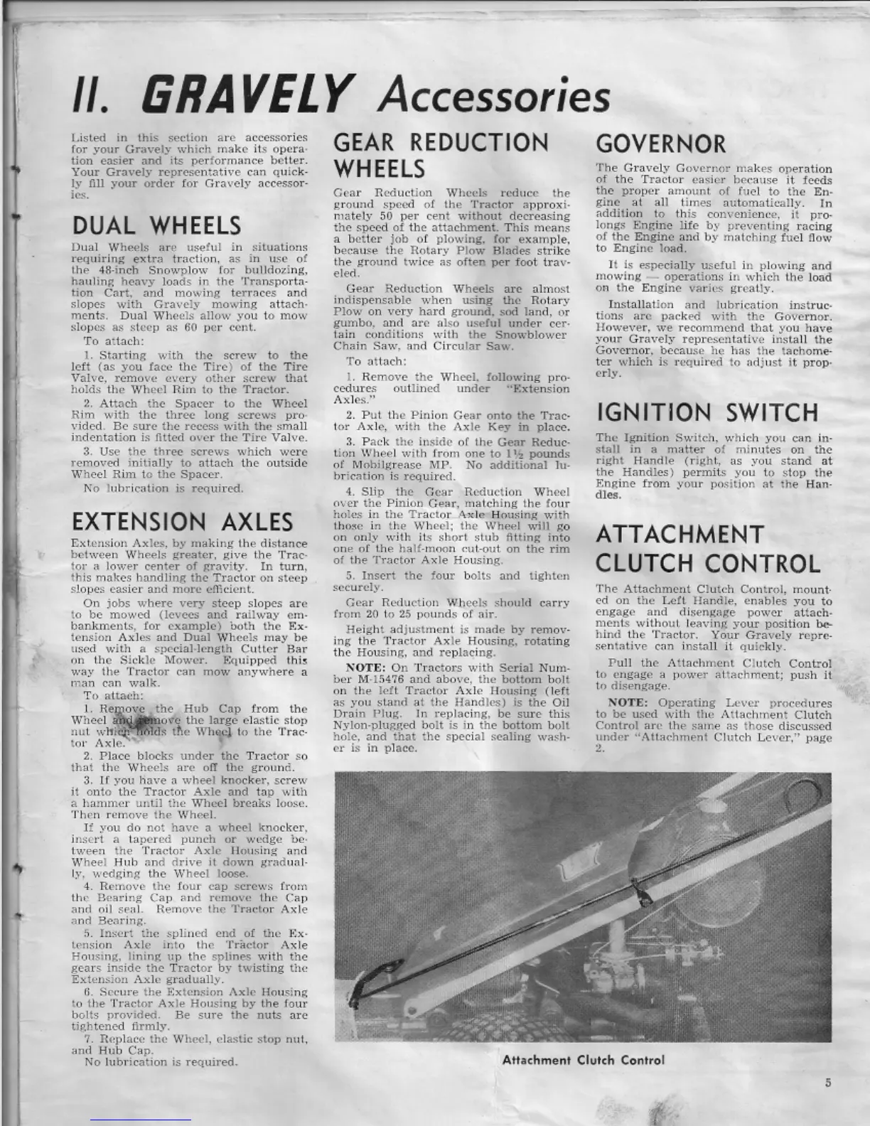 Gravely L 1963 - Accessories; Dual Wheels; Extension Axles; Gear Reduction Wheels