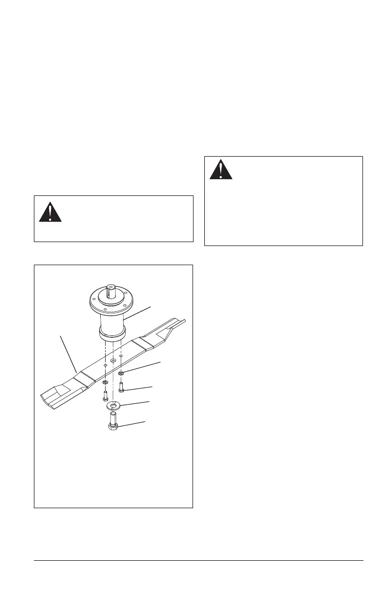 1. Install mower blade, washers, and bolts