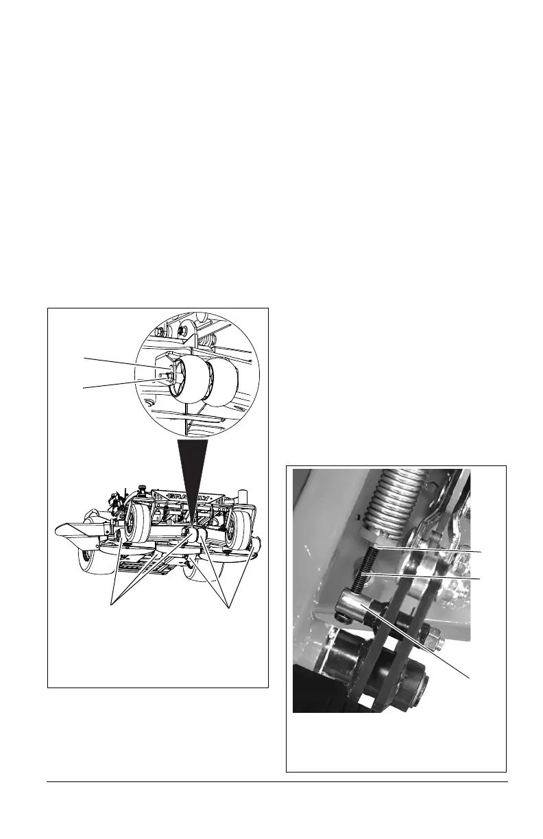scalp rollers on the inside of the mower deck.