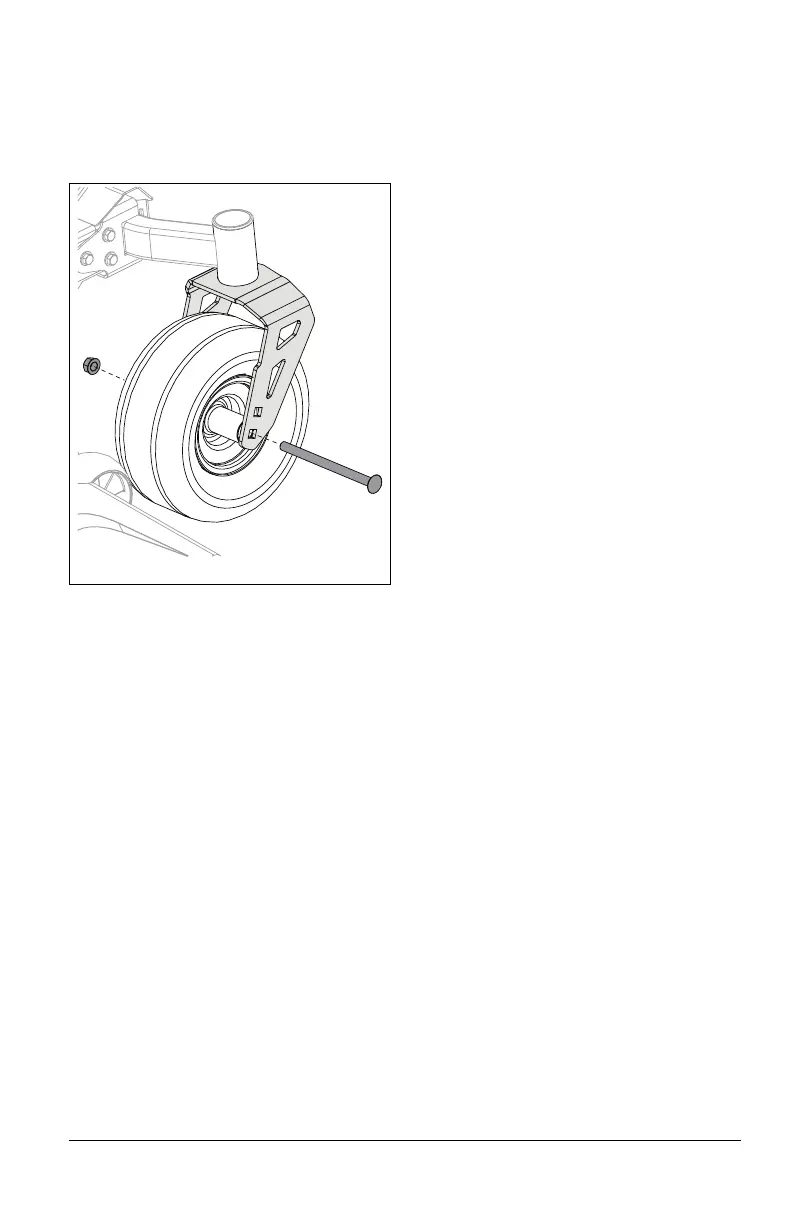 3. Align caster wheel with lower hole in