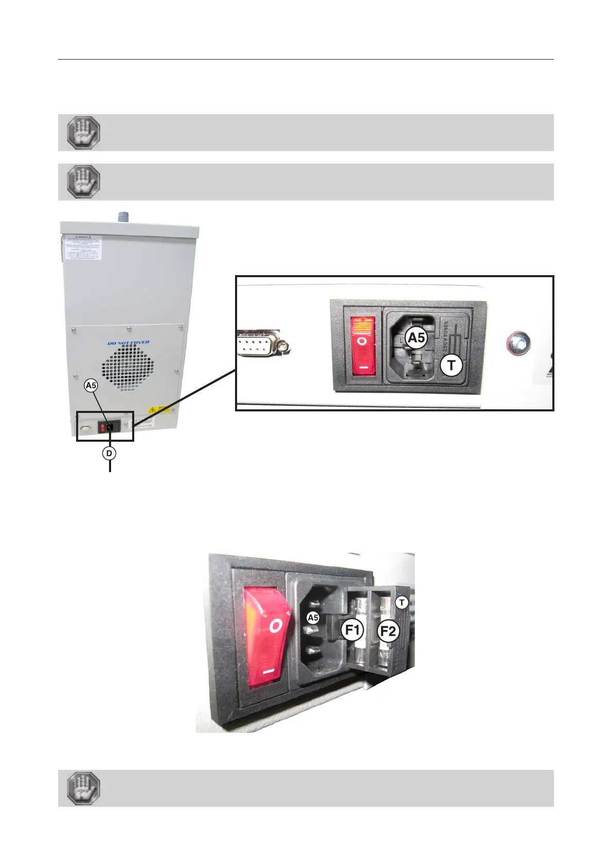 3. Replace the fuse (F1) and close the drawer (T) again.