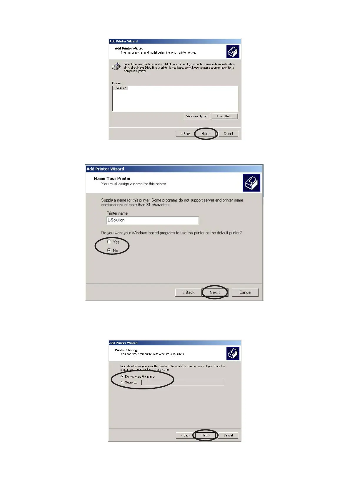 13. Choose if you would like to share your printer with someone else and click «Next».