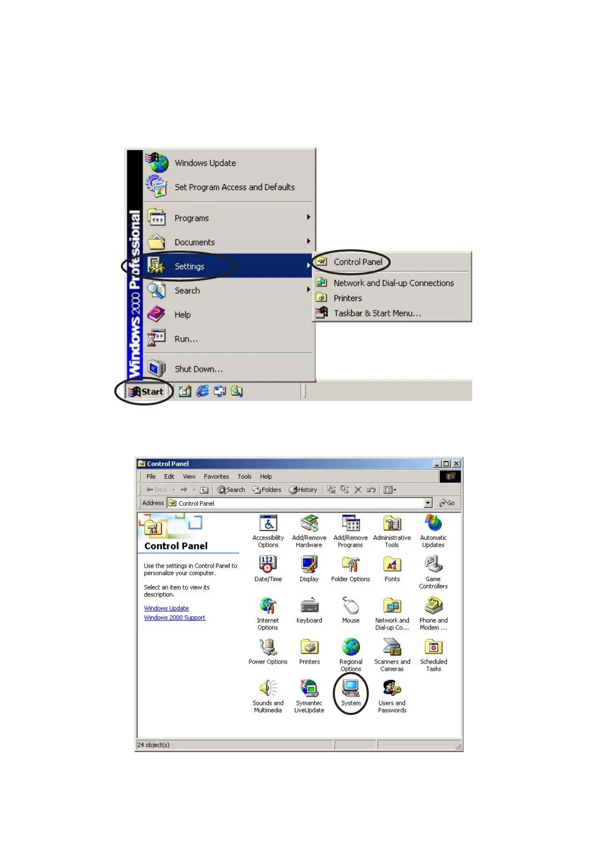 1. In the Windows 2000® Taskbar , click "Start".
