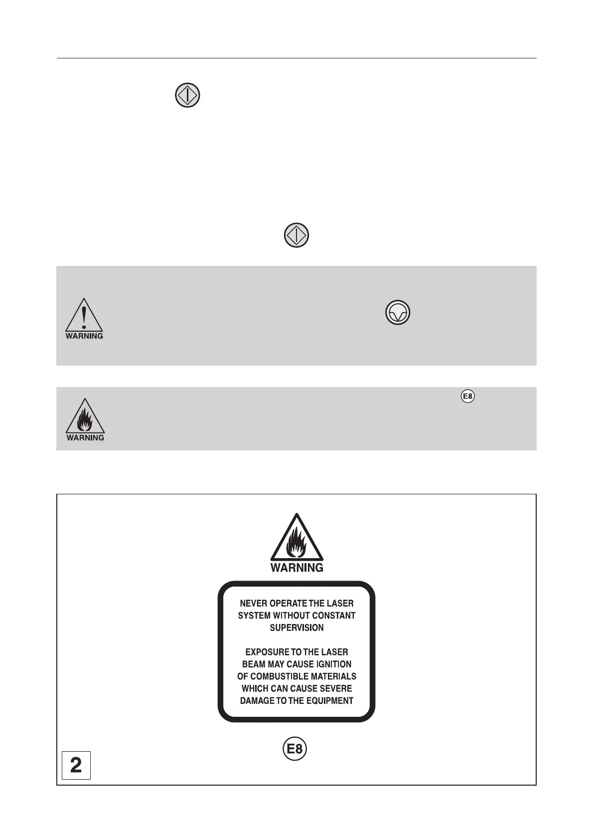 Exposure to the LASER beam may cause ignition of combustible materials which can