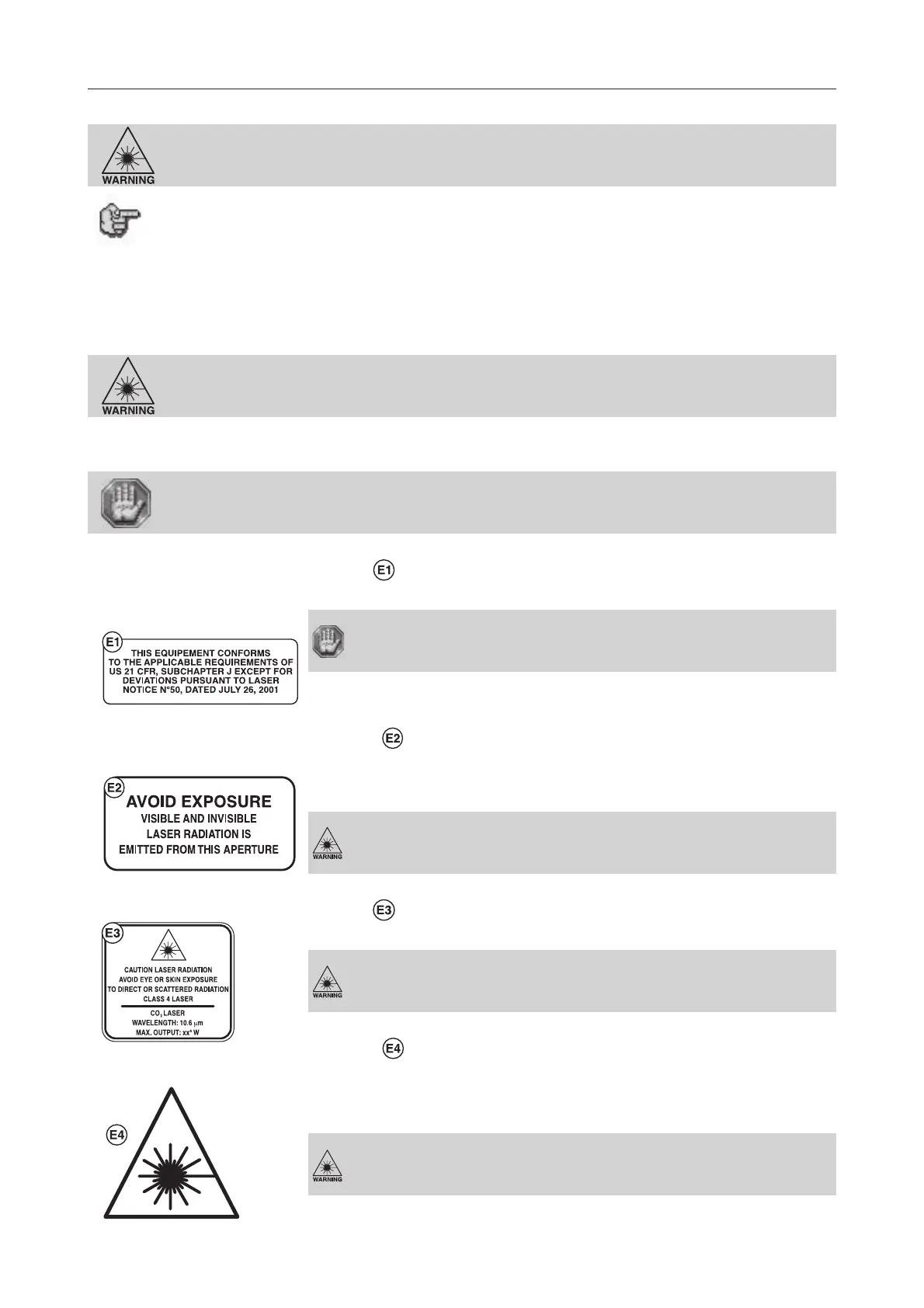 The following warning labels are placed on the LASER system for your safety. DO NOT