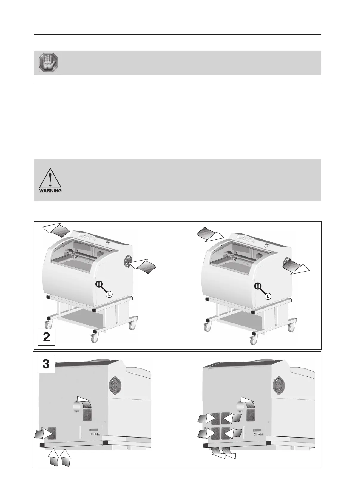 backing it into a corner, etc. The rear side of the LASER system must be allowed to