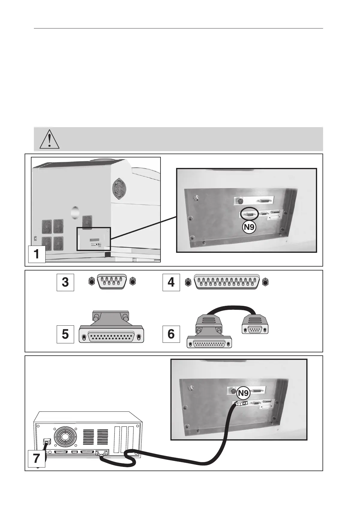 1. Plug the serial cable into the serial port (N9) of the L-SOLUTION 800 machine (diagram 1).