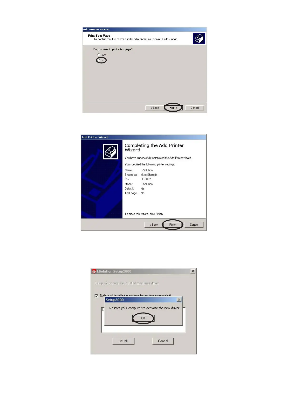 14. Select «No» when it offers to print a test page, and then click «Next».