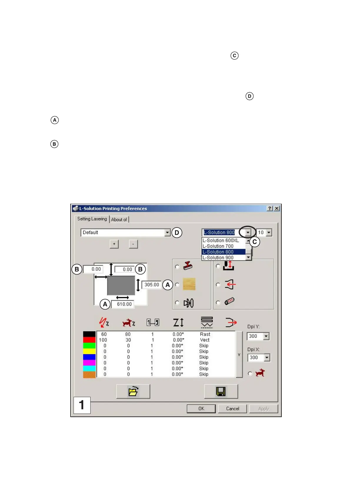 enter the suitable setting values (the maximum dimensions allowed are those of the machine maximum engraving area).