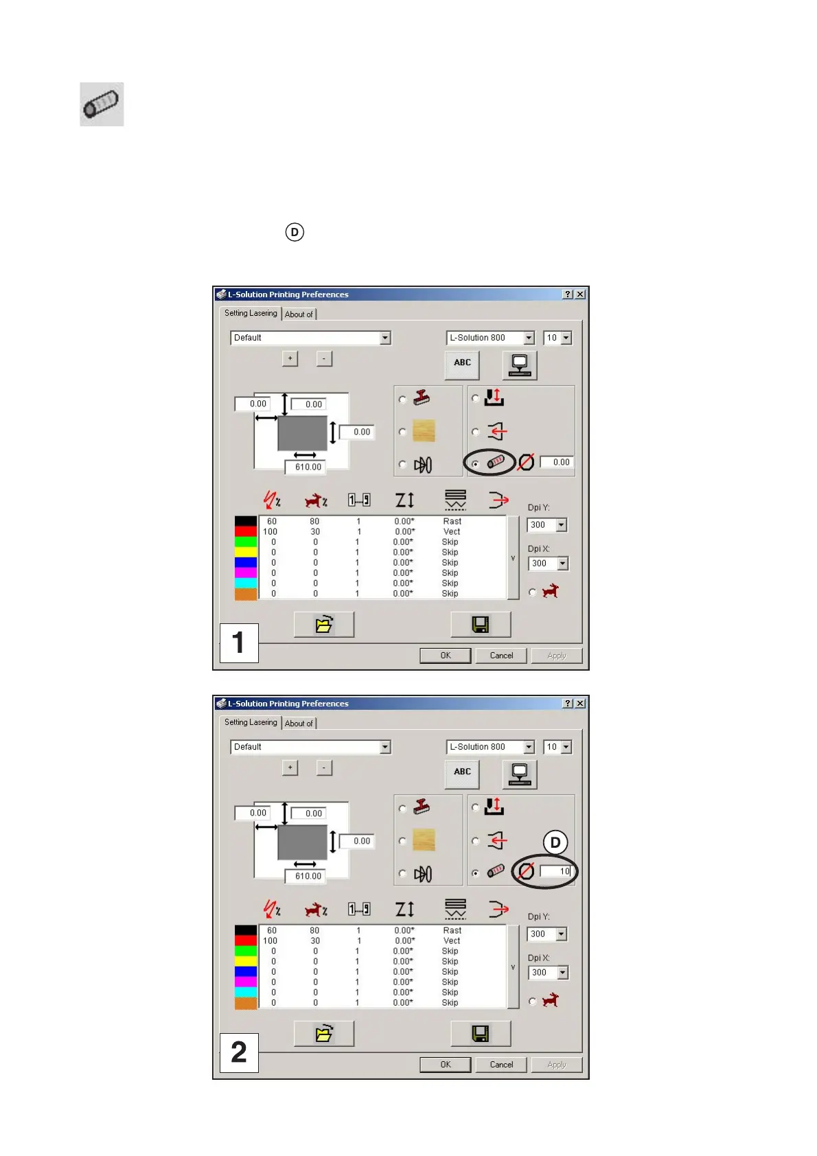 The user must indicate the diameter of the engraving cylindrical part (pict. 2).