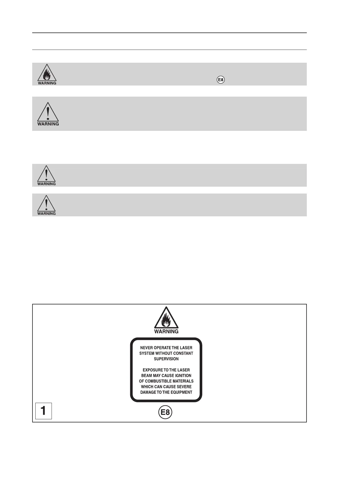 NEVER LEAVE THE LASER SYSTEM RUNNING UNATTENDED FOR ANY REASON. Exposure