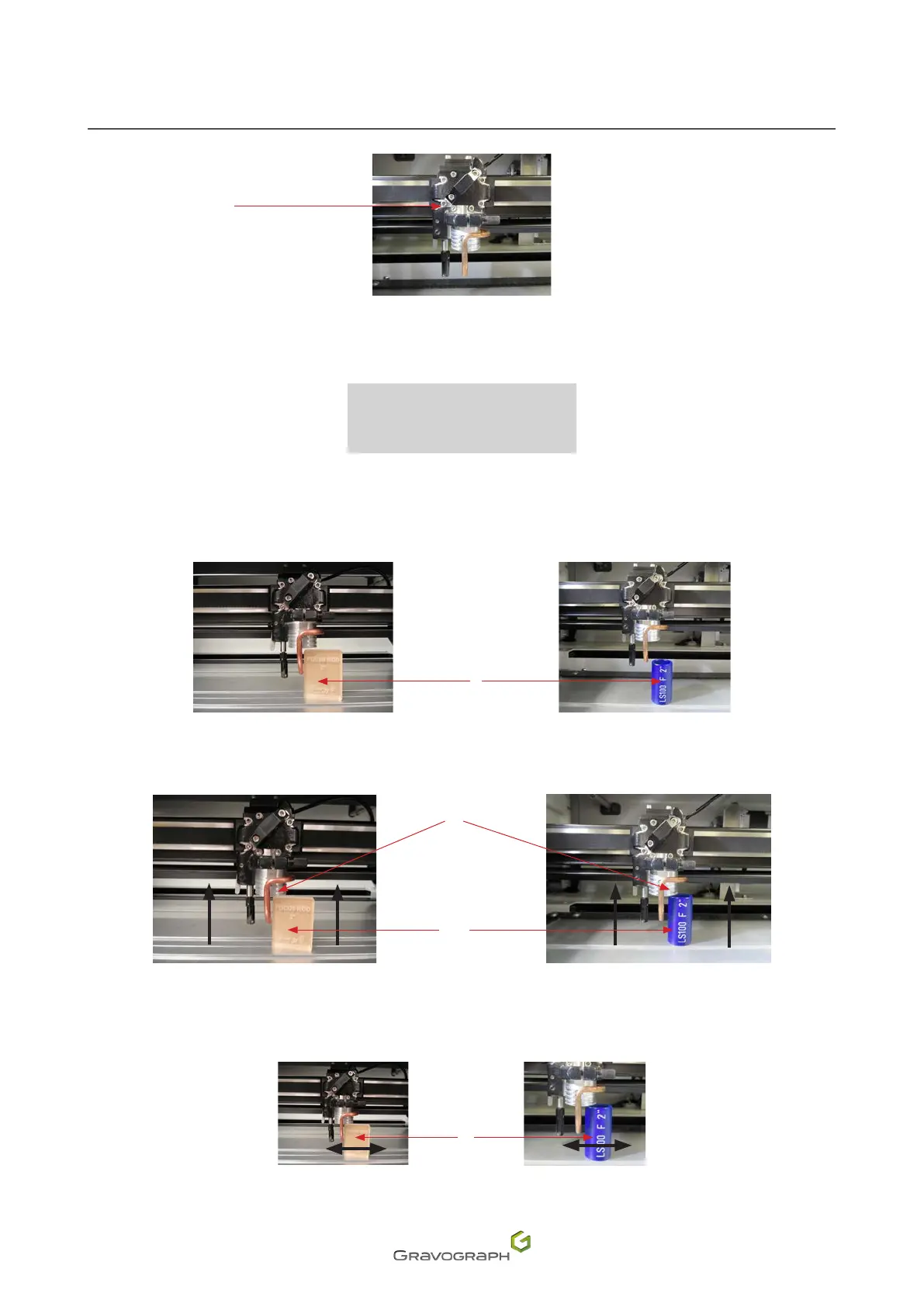 10. Placetheautofocusadjustmentgageinpositionontheengravingtable,underthelenssupportof
