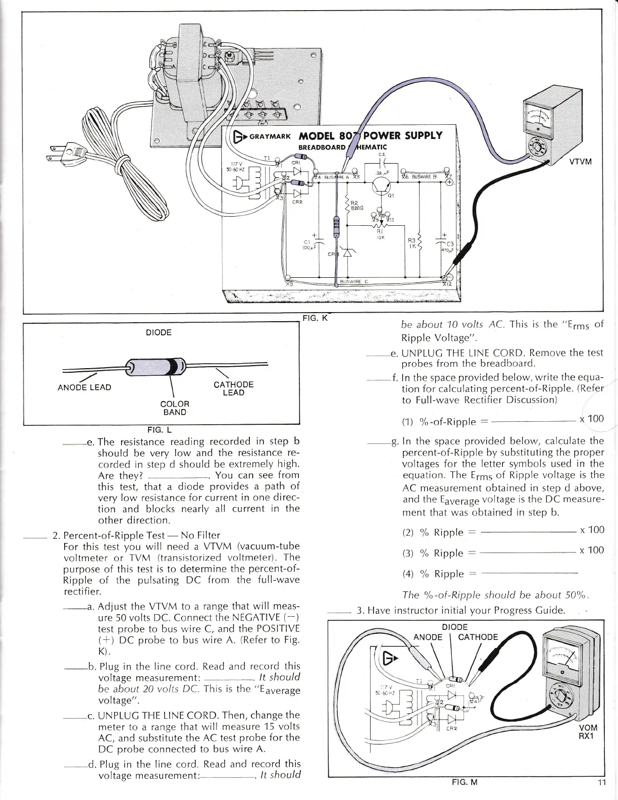 Graymark 803 - RECTIFIER CIRCUIT MEASUREMENT; Diode Lead Identification; Percent-of-Ripple Test (No Filter)