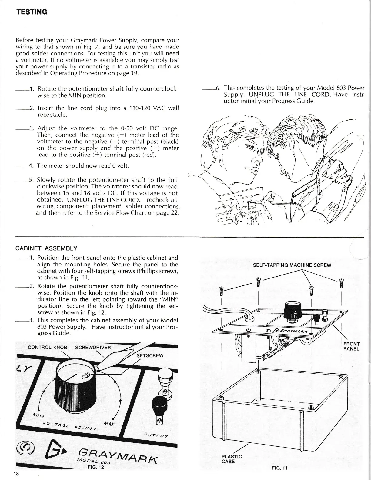 Graymark 803 - TESTING PROCEDURE; Potentiometer and Voltmeter Setup; Output Voltage Verification; Testing Completion