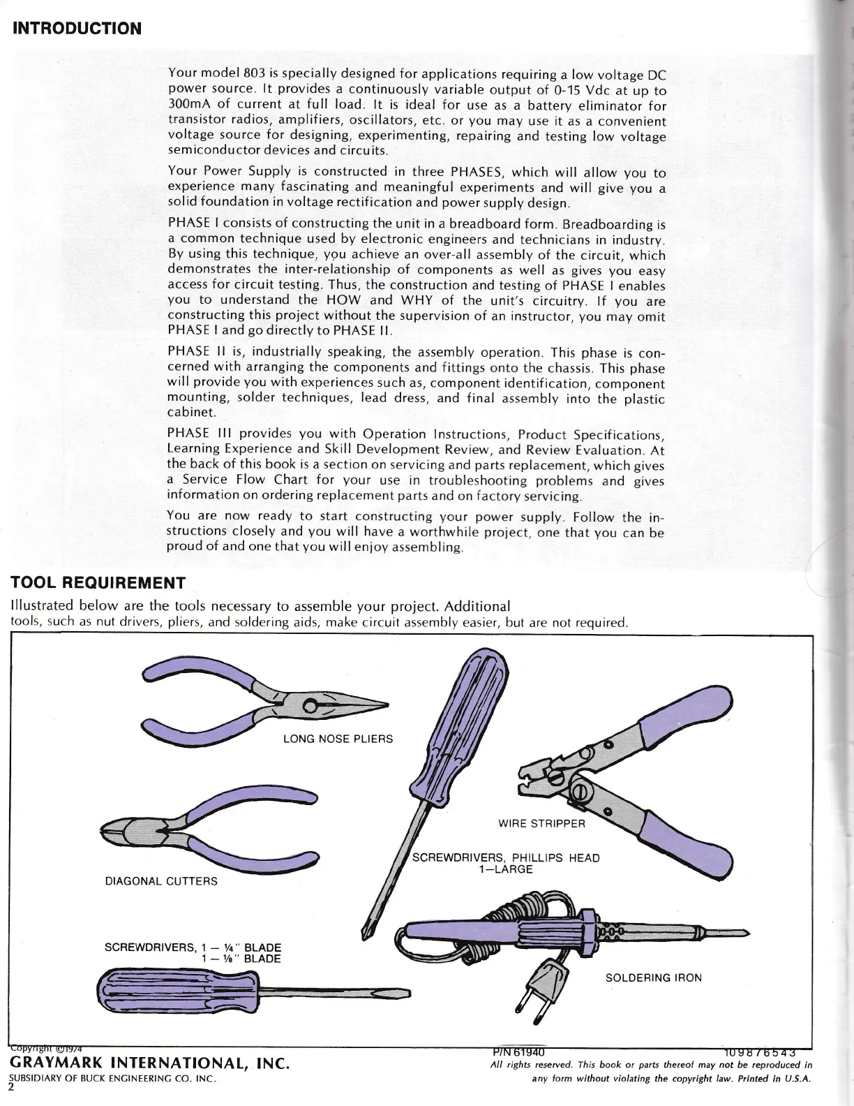 Graymark 803 - INTRODUCTION; TOOL REQUIREMENT