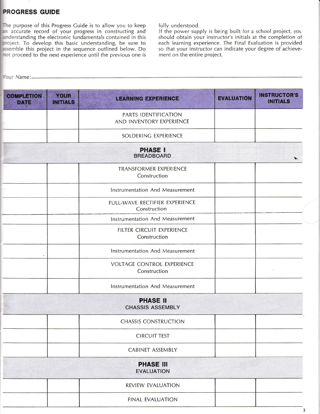 Graymark 803 - PROGRESS GUIDE; Parts Identification and Inventory; Soldering Practice; Phase I: Breadboard Construction