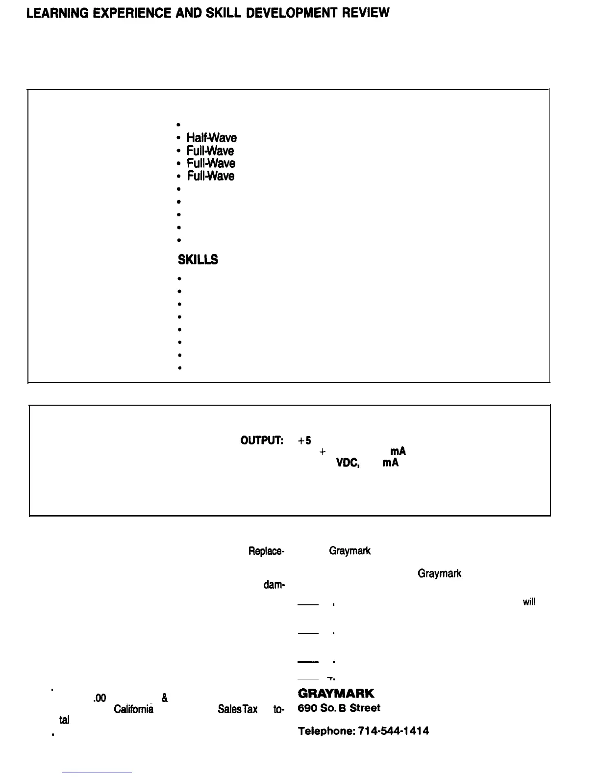 your request for replacement parts to Graymark.