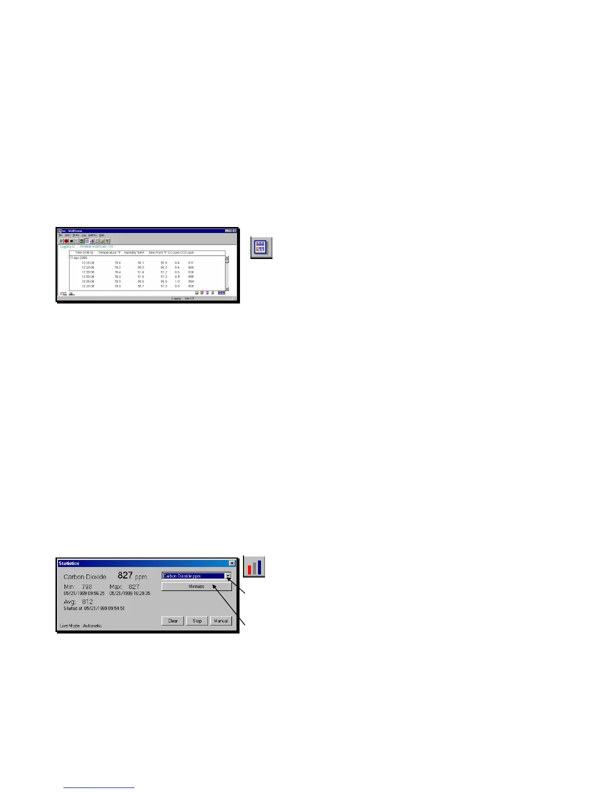 The Statistics window displays the minimum, maximum and average readings for a
