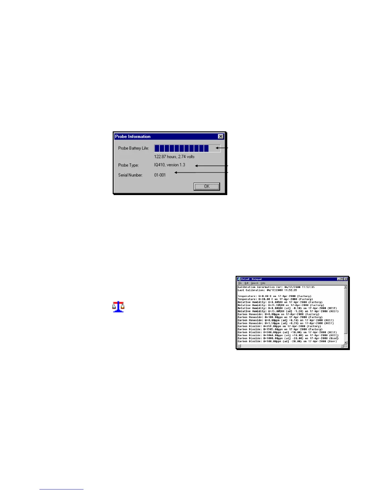 You may also view calibration data for a probe attached to the Lap PC in live mode.
