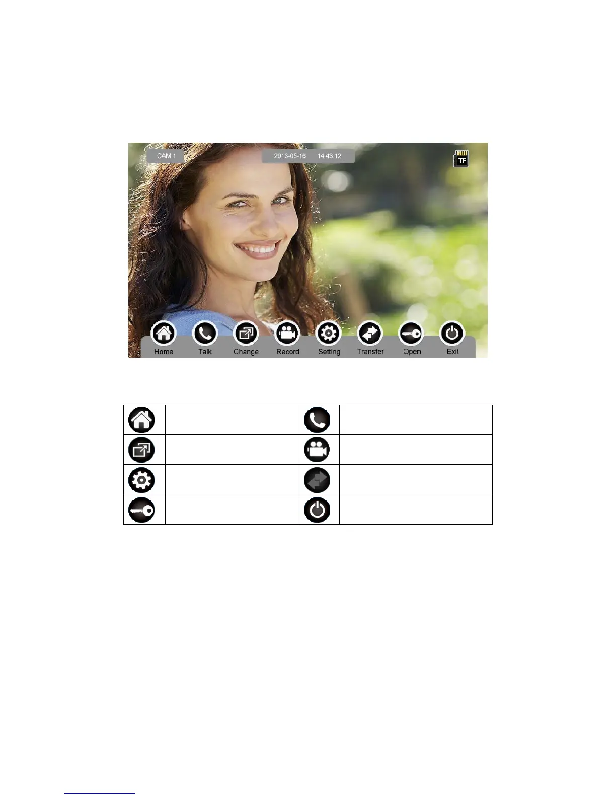 When door station calls in, the visitor’s image will be shown on the monitor screen