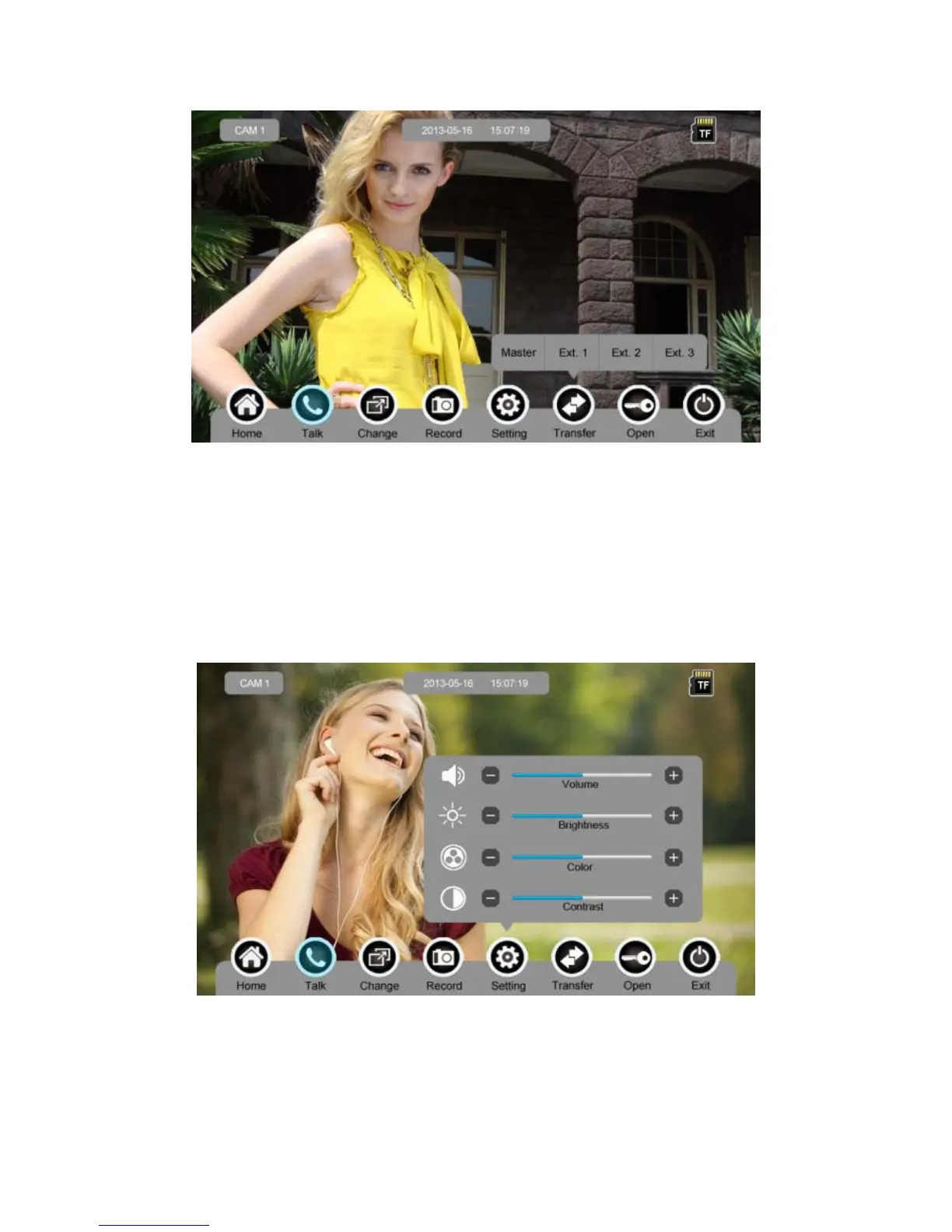 ¾ press [Change] to switch to other door station or CCTV, and the current talk will