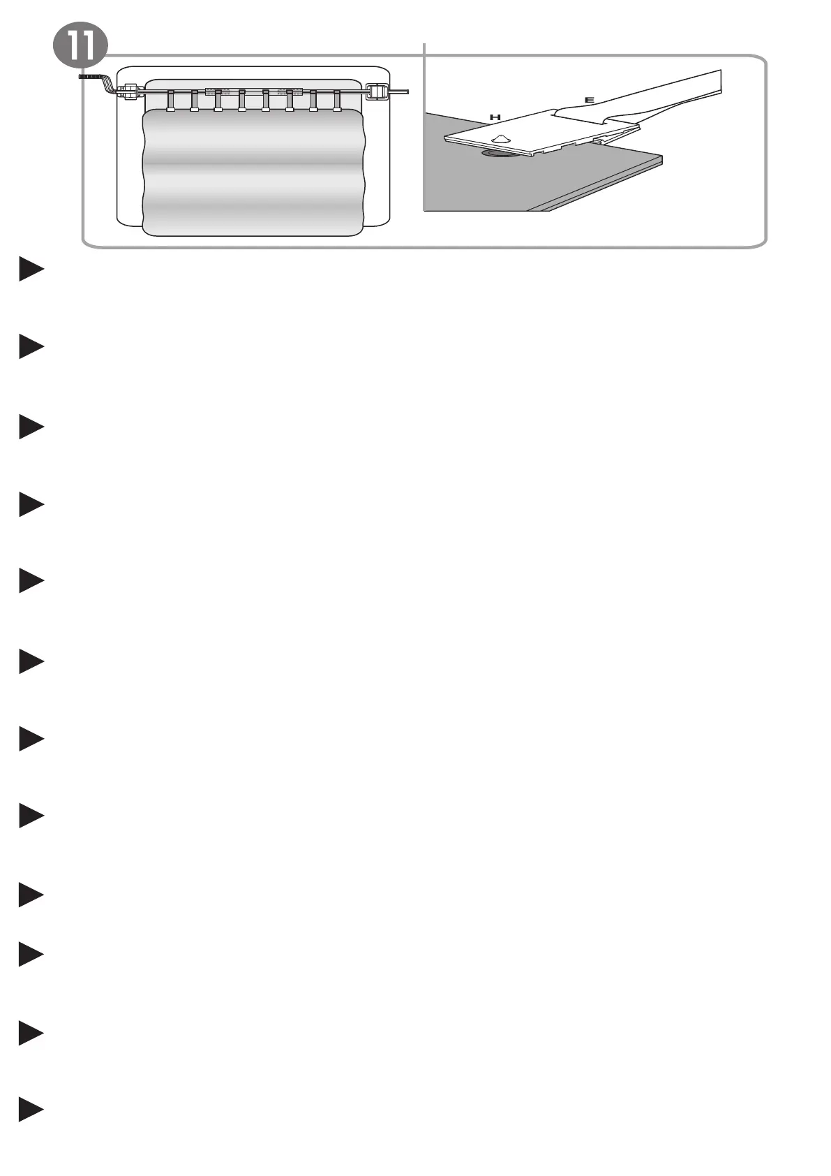 Rozevřete kryt bazénu a umístěte do správné polohy. Na kryt připevněte dílec „H" při zachování pravidelných vzdáleností jak v případě