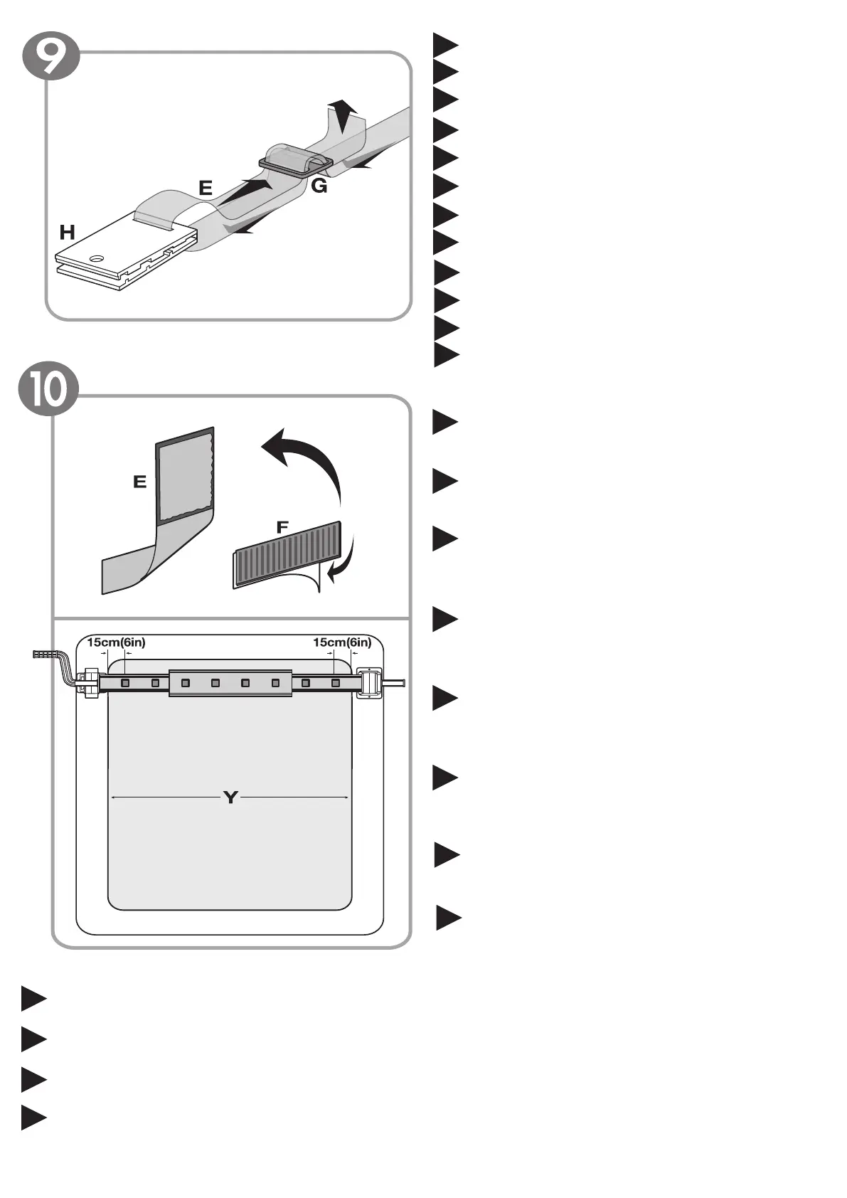 Desprindeți cele opt benzi autocolante cu cârlig și buclă de sex masculin "F" din "E" și îndepărtați straturile de protecție. Lipiți-le pe